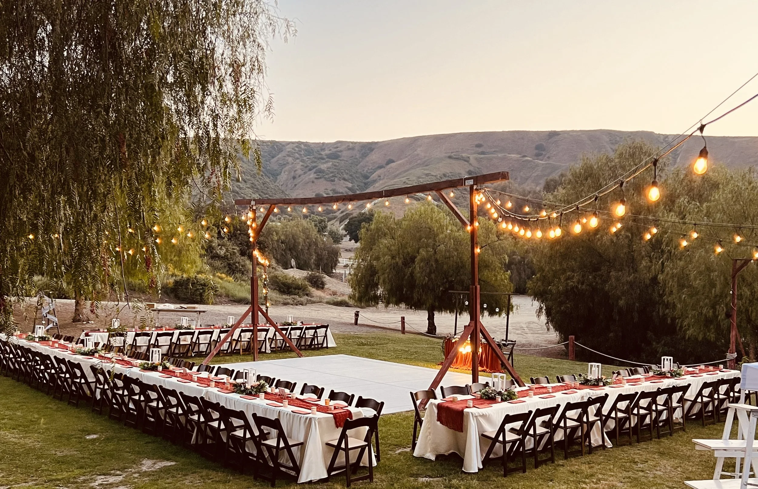 Whether you're hosting an intimate gathering or a grand party (up to 175 guests), our versatile layout ensures seamless flow from dinner to dancing. Twinkling lights, fresh breezes, and Southern California’s natural beauty make Rancho De Amor the perfect place to celebrate love—all night long.